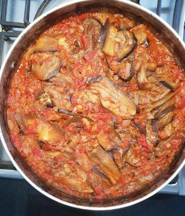 Repeat until an even colour aubergine and a wonderful thicker tomato and onion sauce.